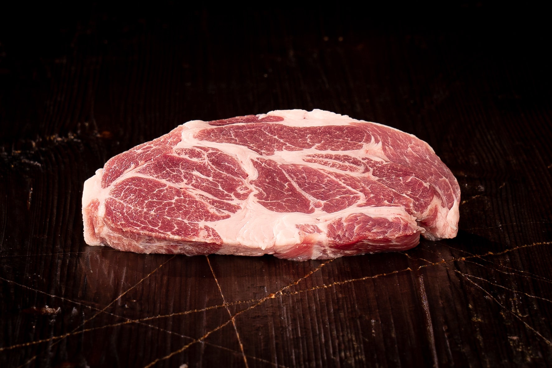 Der Halsgrat des Bio-Freiland-Schweins ist das ideale Grillstück. Die starke Marmorierung fällt beim Anbraten sofort ins Auge und sorgt für saftige, aromatische Steaks.